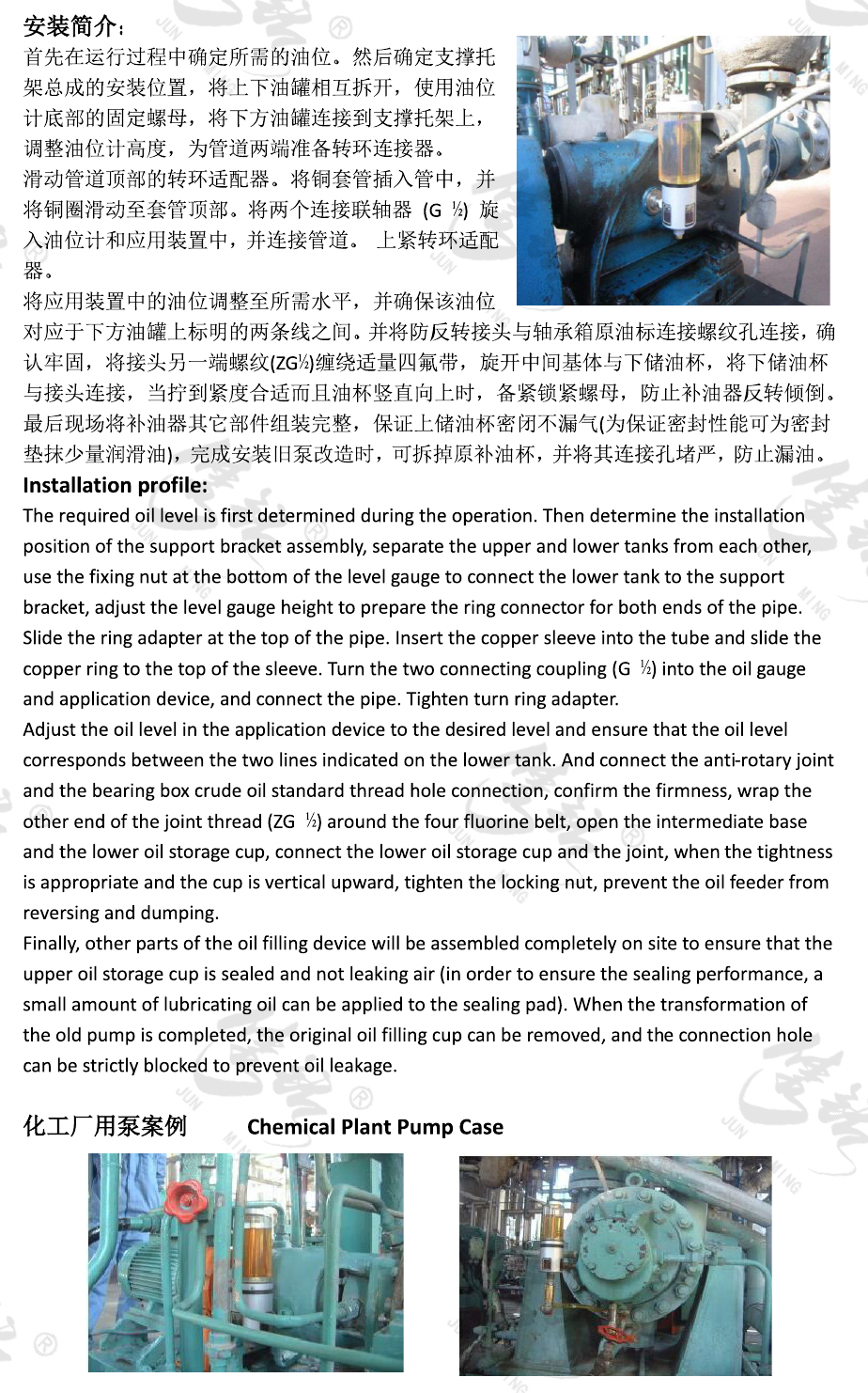 恒液位自動(dòng)補(bǔ)油器/油位計(jì),可分為四種規(guī)格:125ml、250ml、500ml、1000ml,設(shè)計(jì)用于在軸承箱、齒輪箱、曲軸箱或類似油浴的應(yīng)用中實(shí)現(xiàn)最佳潤(rùn)滑油位的自動(dòng)調(diào)整,使?jié)櫥捅3衷谠O(shè)計(jì)的恒定位置。在運(yùn)行條件下有效解決油位的調(diào)整問(wèn)題。此外,本裝置還可自動(dòng)補(bǔ)償漏油問(wèn)題,并且可目視檢查油位。