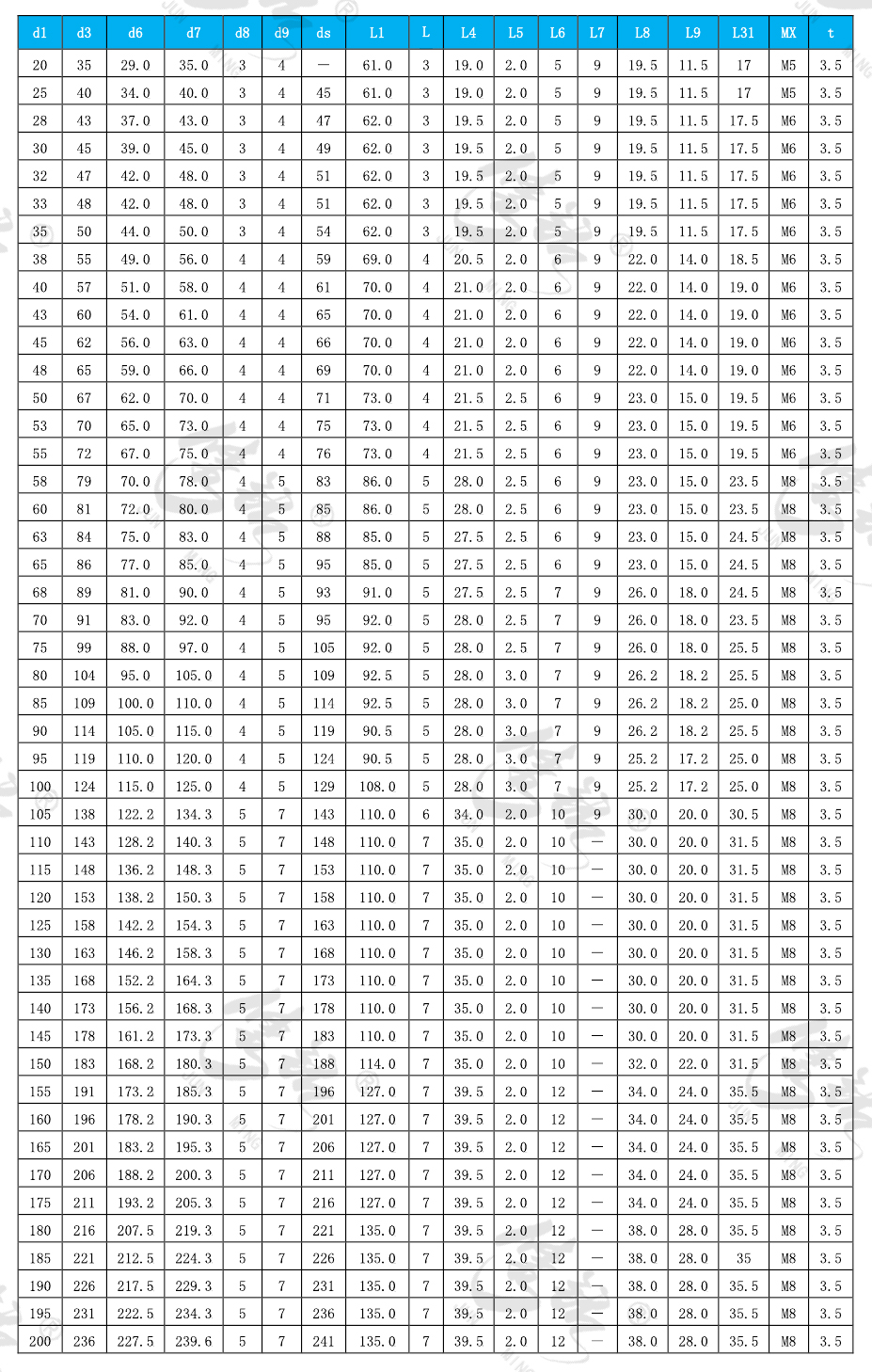 具有與“M7N”系列同樣設(shè)計(jì)性能,除驅(qū)動(dòng)座的安裝長度外,其它安裝尺寸(d<100mm)符合 DIN 24960 標(biāo)準(zhǔn)。
