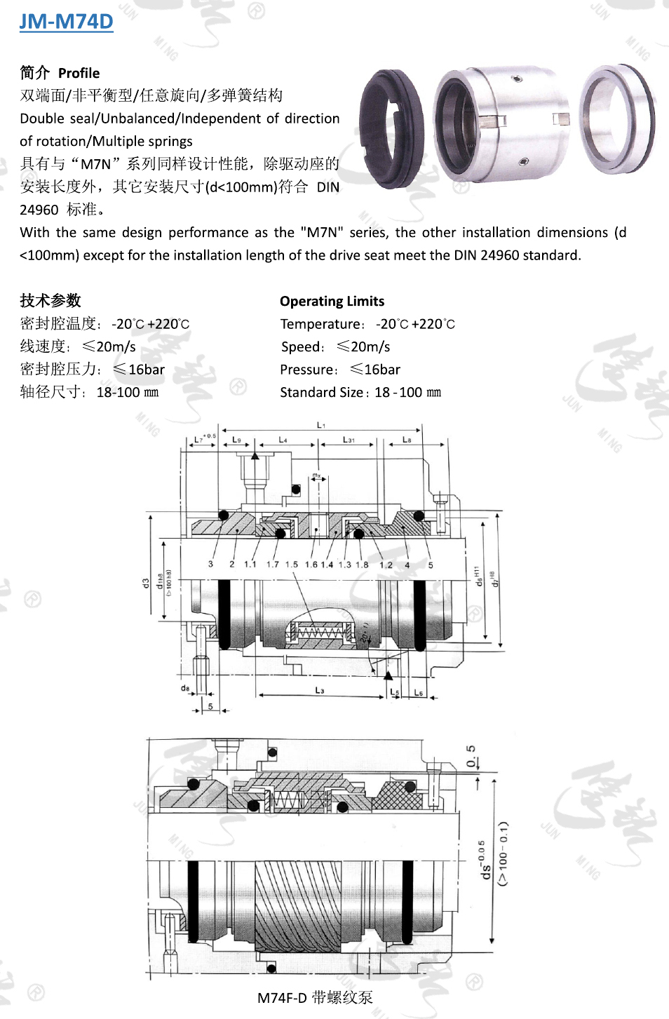 雙端面/非平衡型/任意旋向/多彈簧結(jié)構(gòu)。
