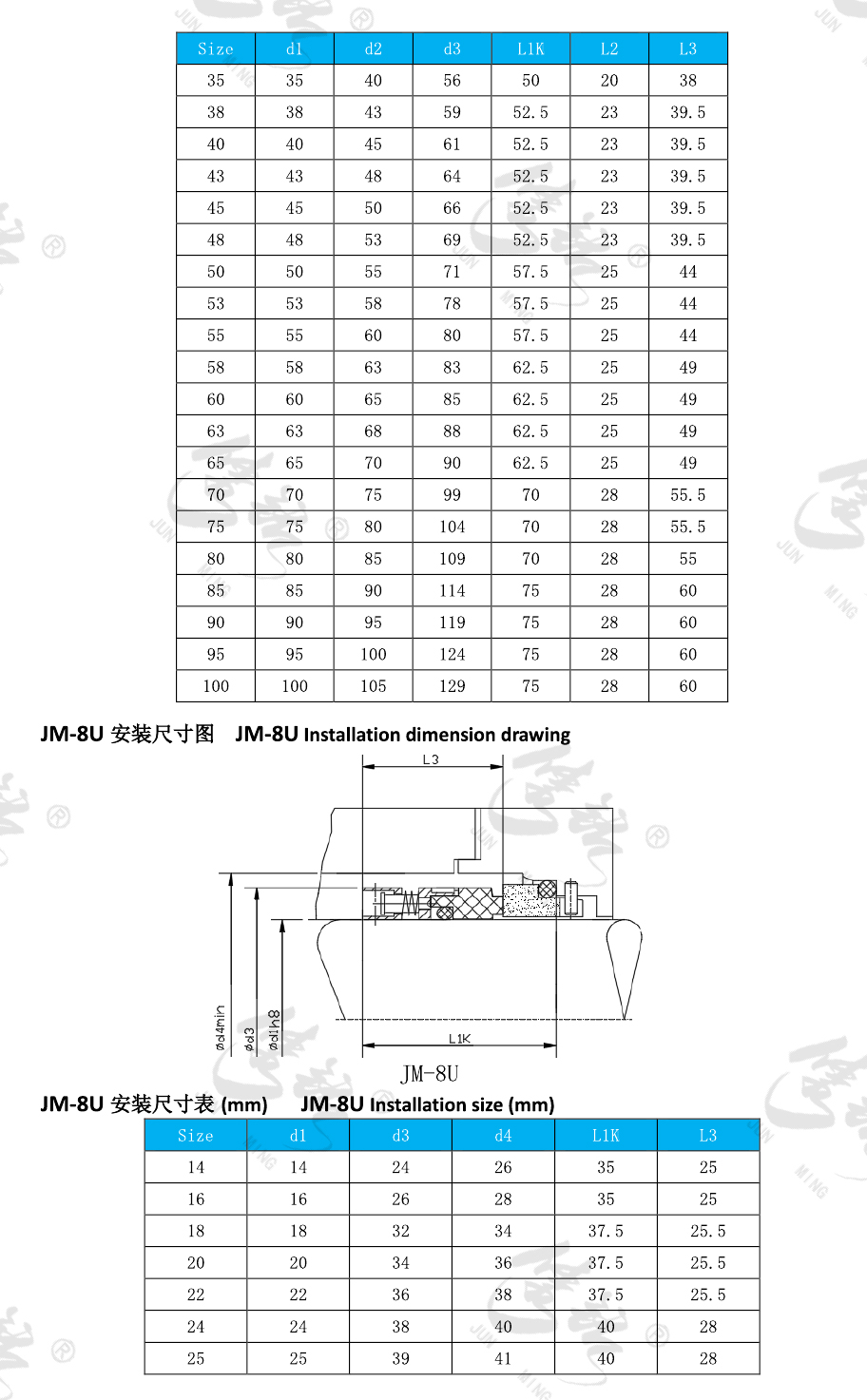經(jīng)過優(yōu)化設(shè)計的密封端面,具有綜合性能高的優(yōu)點,適合不同行業(yè)的需要,適用于水、烴、低黏度油、低濃度酸堿等。派生JM-8BKC密封系列,采用流體動壓設(shè)計,尤其適合輕烴類和高壓熱水等工況。