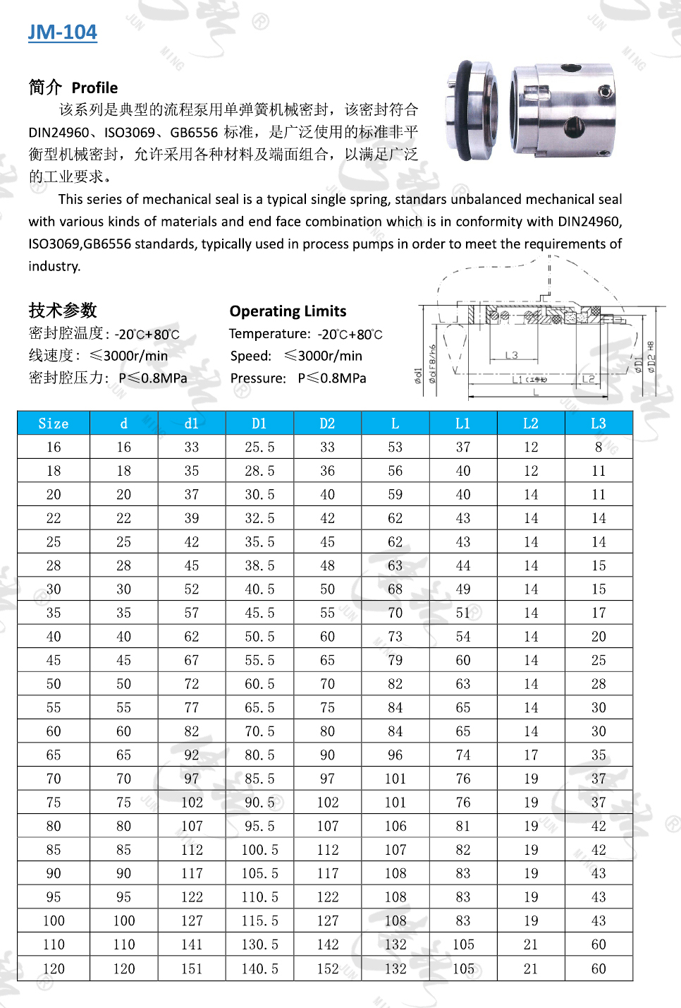 該系列是典型的流程泵用單彈簧機械密封,該密封符合 DIN24960、ISO3069、GB6556標準,是廣泛使用的標準非平衡型機械密封,允許采用各種材料及端面組合,以滿足廣泛的工業(yè)要求。